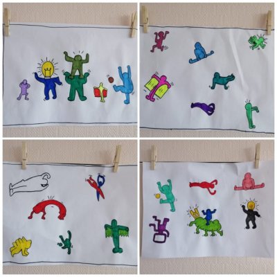 Après avoir pris un cours de dessin, les élèves de l’English Club de 5e se sont entraînés à dessiner à la façon de Keith Haring, artiste, dessinateur, peintre et sculpteur américain.